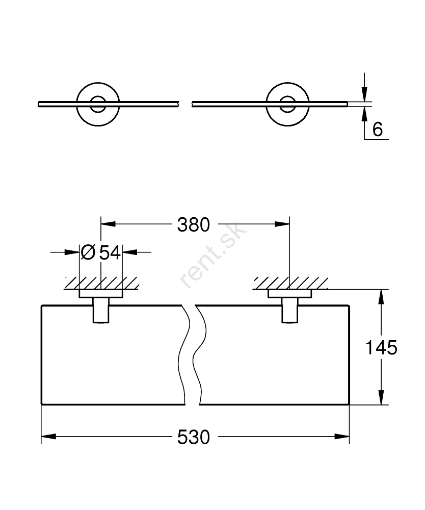 • Sklenená polica dĺžky 530 mm s užitočnou dĺžkou 380 mm pre optimálne využitie priestoru.