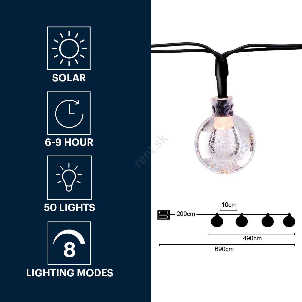 Grundig - LED solárny reťazec 50xLED/8 funkcií 6,9 m teplá biela 600 mAh