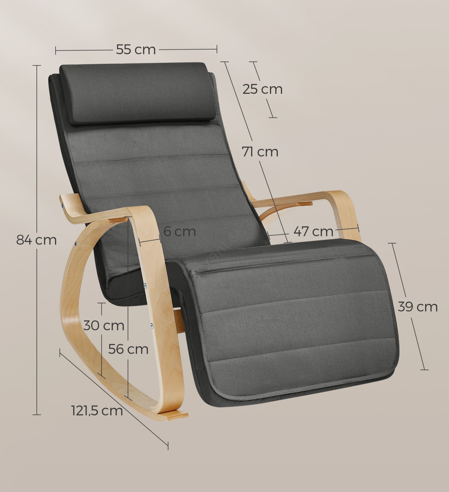 • Hojdacie kreslo je vyrobené z odolného, vysoko kvalitného dreva a 100% bavlny.