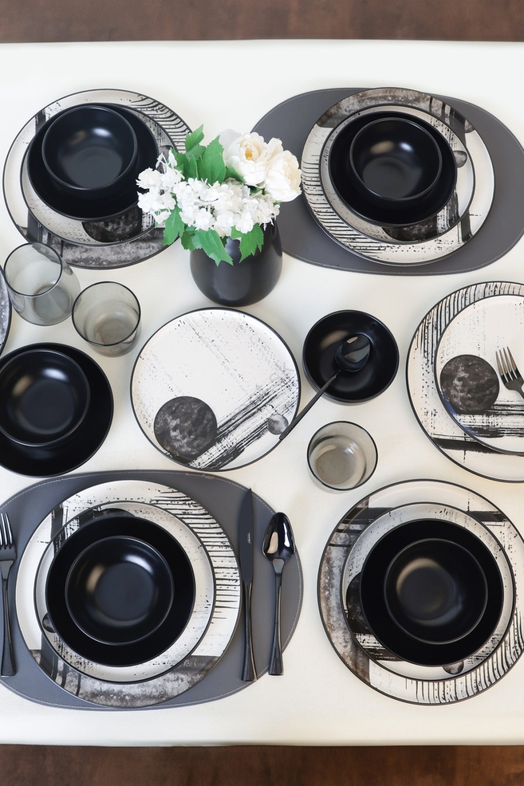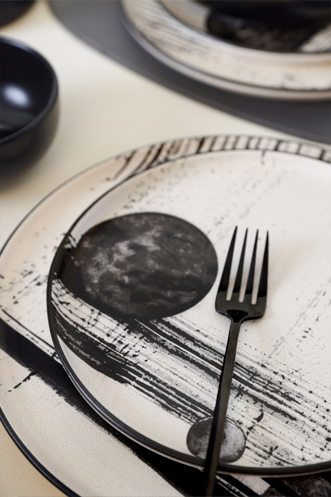 • Jedálenská sada 4 ks čierna/biela/porcelán