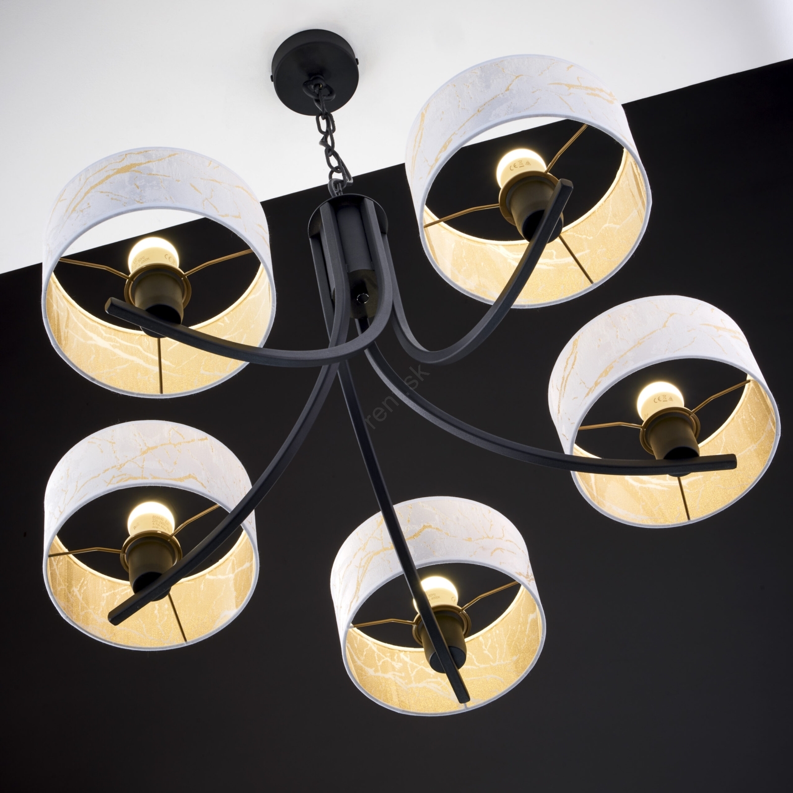Jupiter 2104 - Luster na reťazi ARTHUR 5xE27/15W/230V biela/čierna/mramorový dekor charakterizuje pekný dizajn a funkčné prevedenie.  Do svietidla je určená žiarovka s päticou E27. Tu si môžete kúpiť ďalšie žiarovky za výhodnú cenu. Získate tak zaujímavý doplnok do svojho domova.