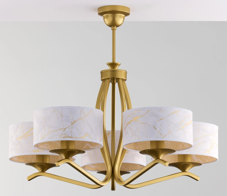 Jupiter 2110 - Luster na tyči KASZMIR 5xE27/15W/230V biela/zlatá/mramorový dekor
