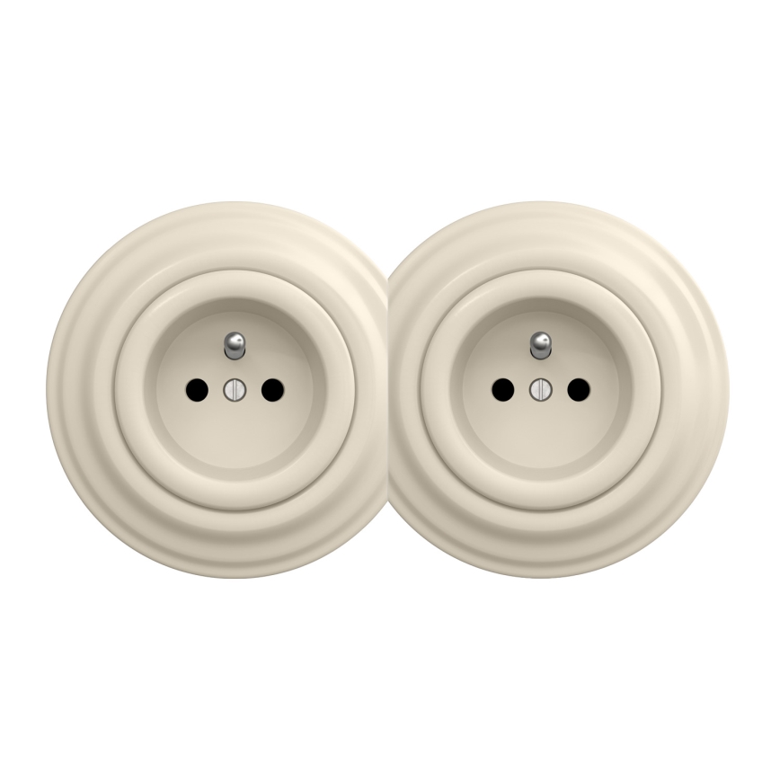 Kliklap - Dvojitá retro domová zásuvka s rámčekom 230V béžová