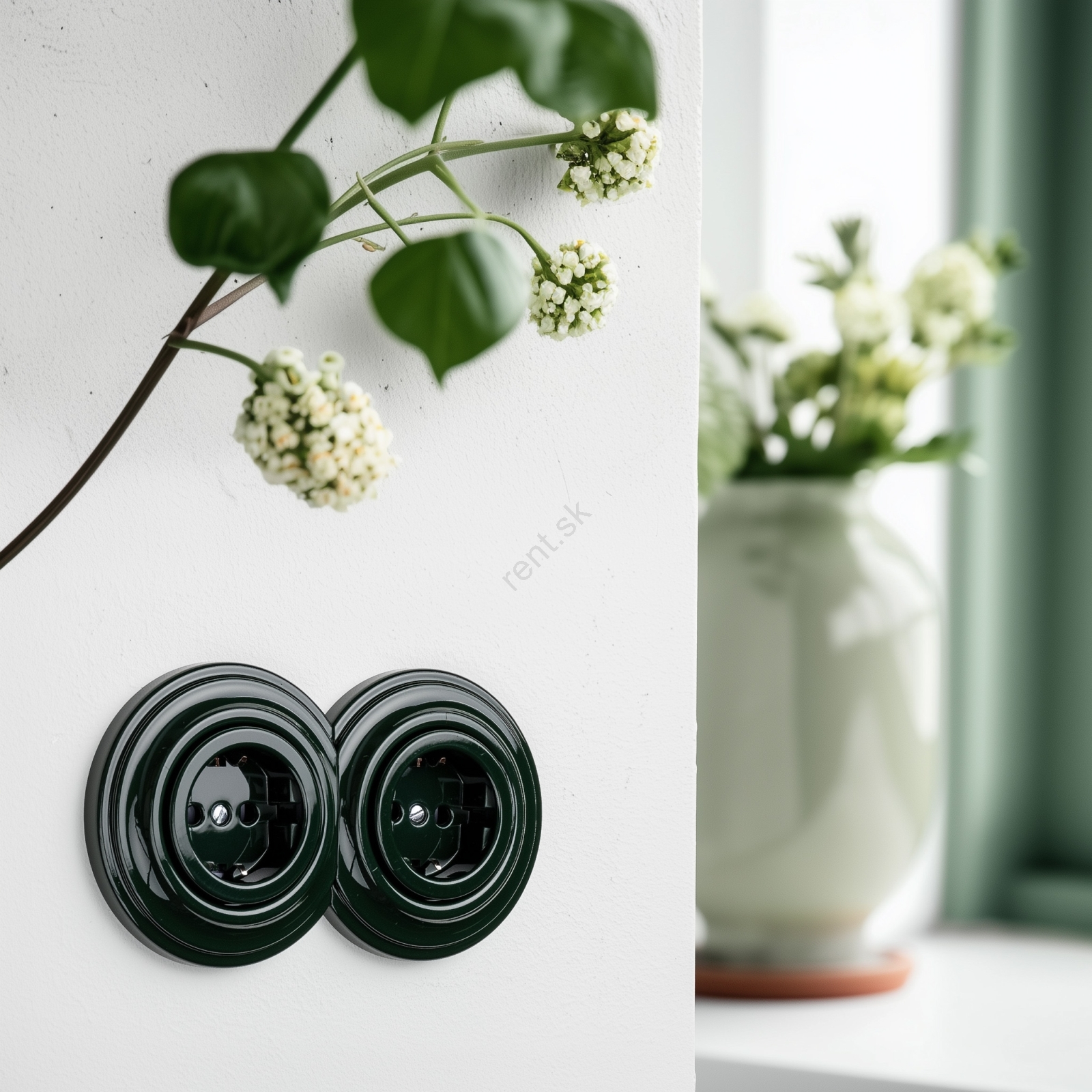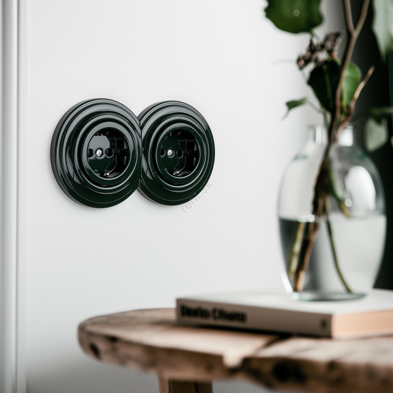 • Kliklap - Dvojitá retro zásuvka do domu s rámčekom SCHUKO 230V zelená