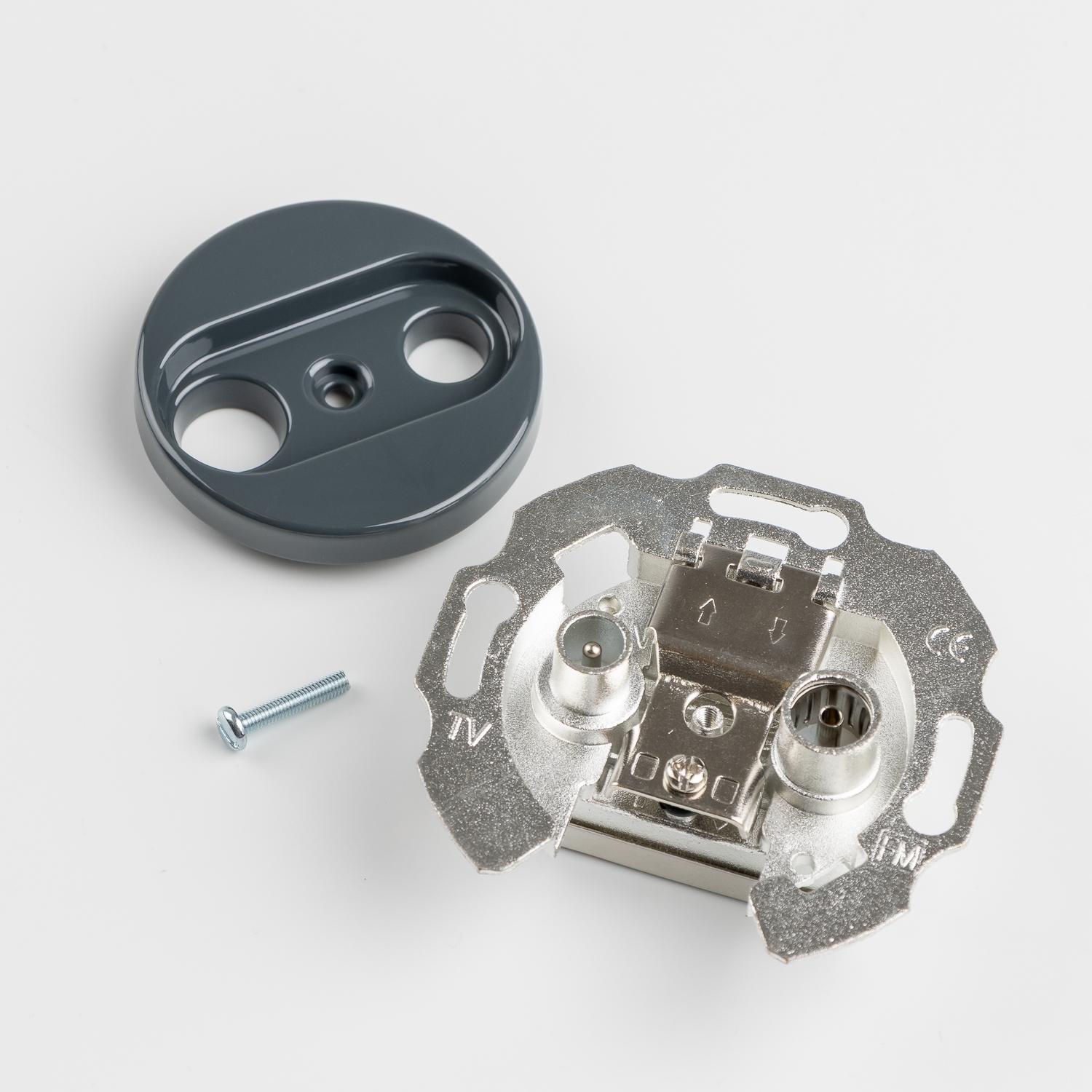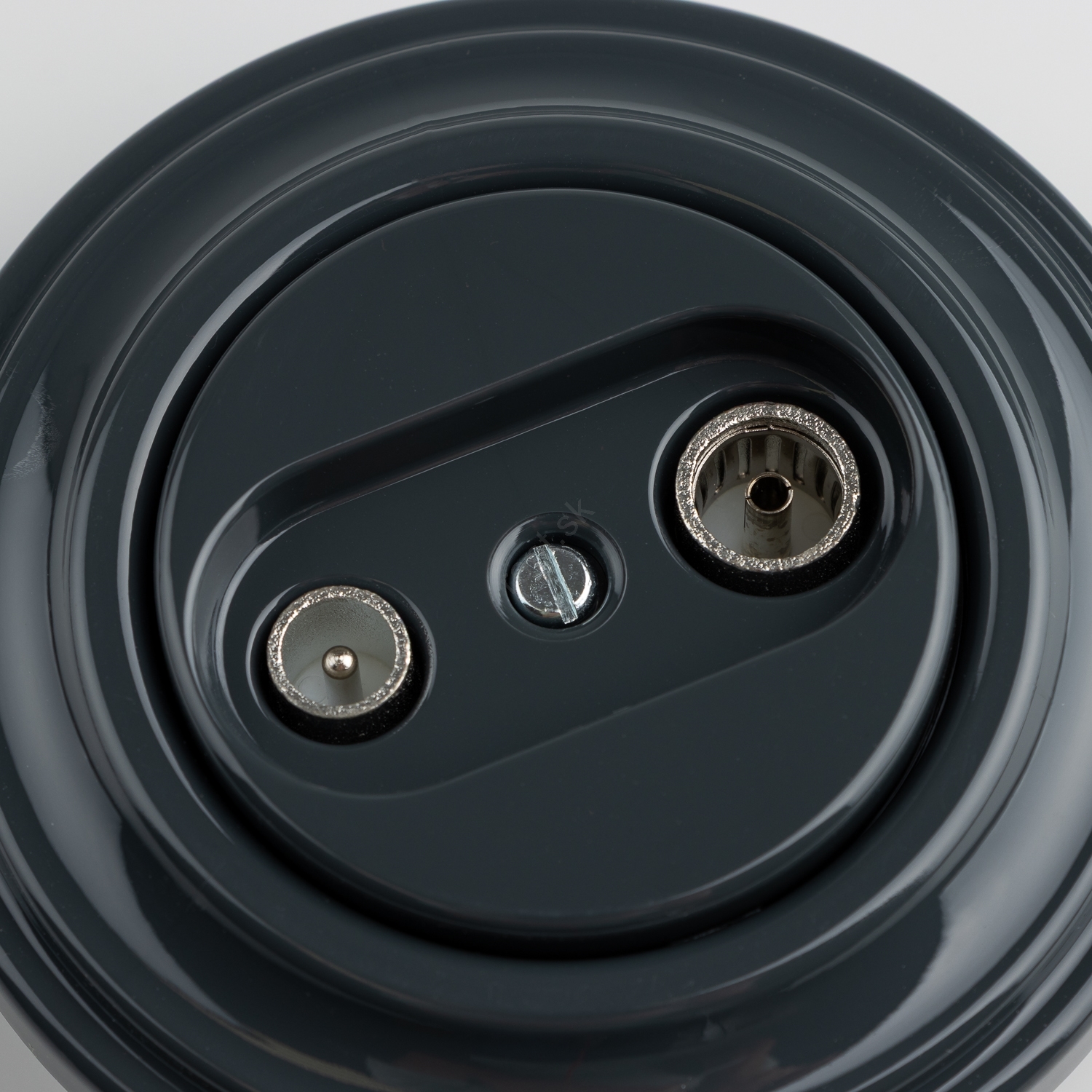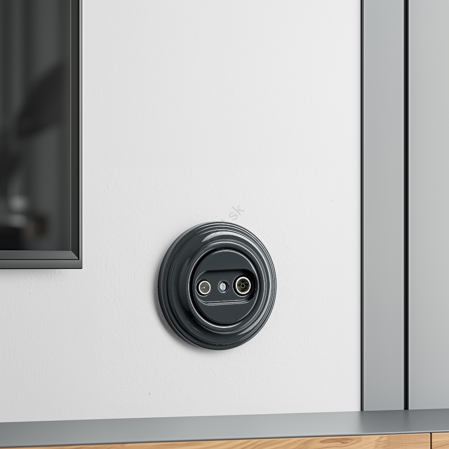 • Kliklap - Retro účastnícka zásuvka TV+R (priebežná) s antracitovým rámikom