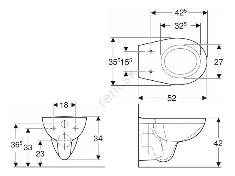 • Závesná WC misa Rekord s hlbokým splachovaním v bielej farbe.