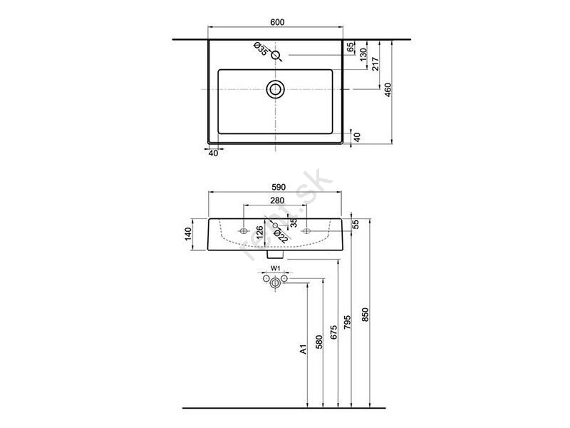 • Nábytkové umývadlo s prepadom.