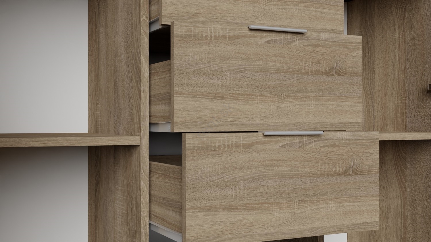 • Vďaka zásuvkám a priehradkám ponúka veľkorysý úložný priestor pre organizáciu predmetov dennej potreby.
