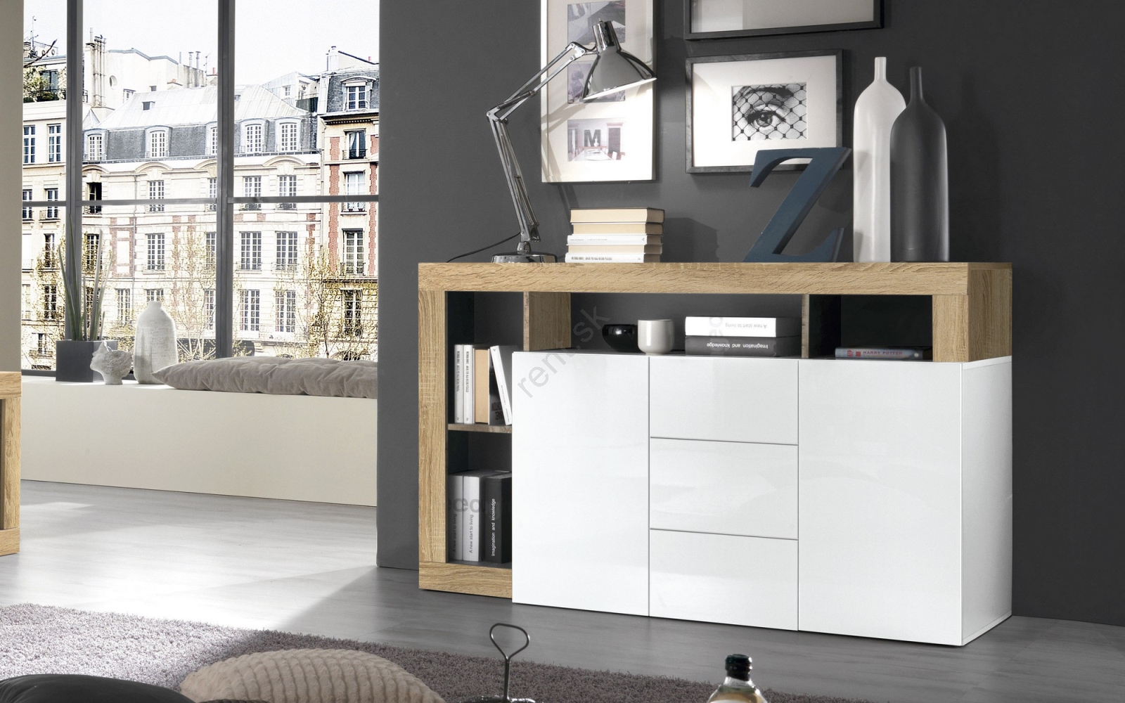 • Komoda LENOR biela/antracit