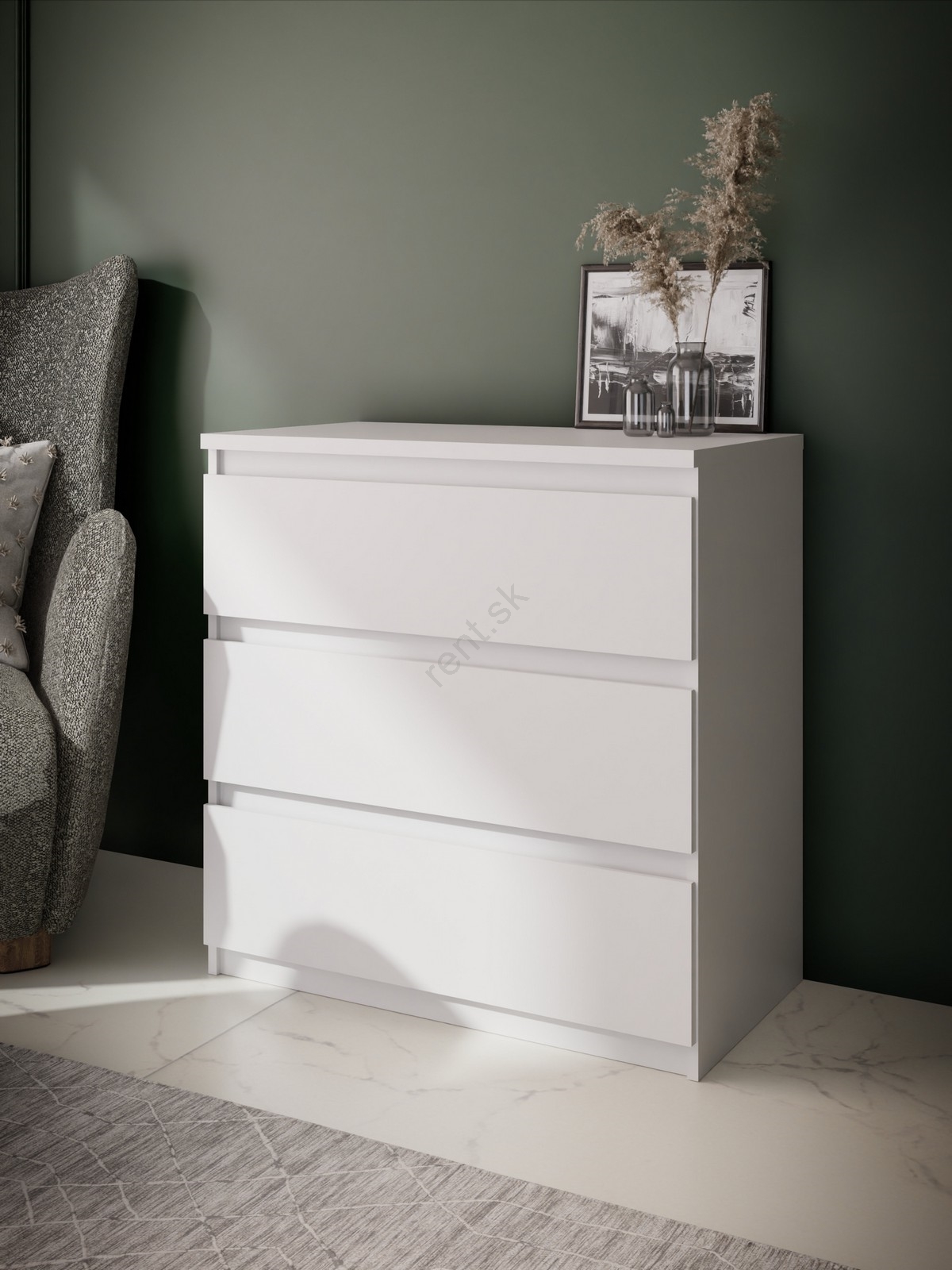• Vrchná doska je dostatočne priestranná na uloženie dekorácií, elektroniky alebo ďalších potrieb.