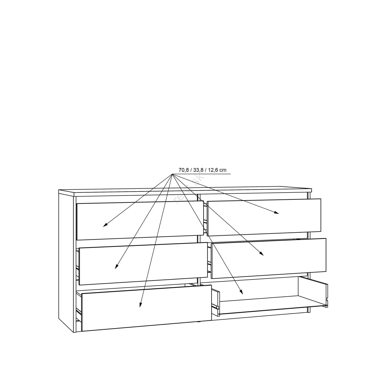 • Vďaka zásuvkám ponúka veľkorysý úložný priestor na usporiadanie predmetov dennej potreby.