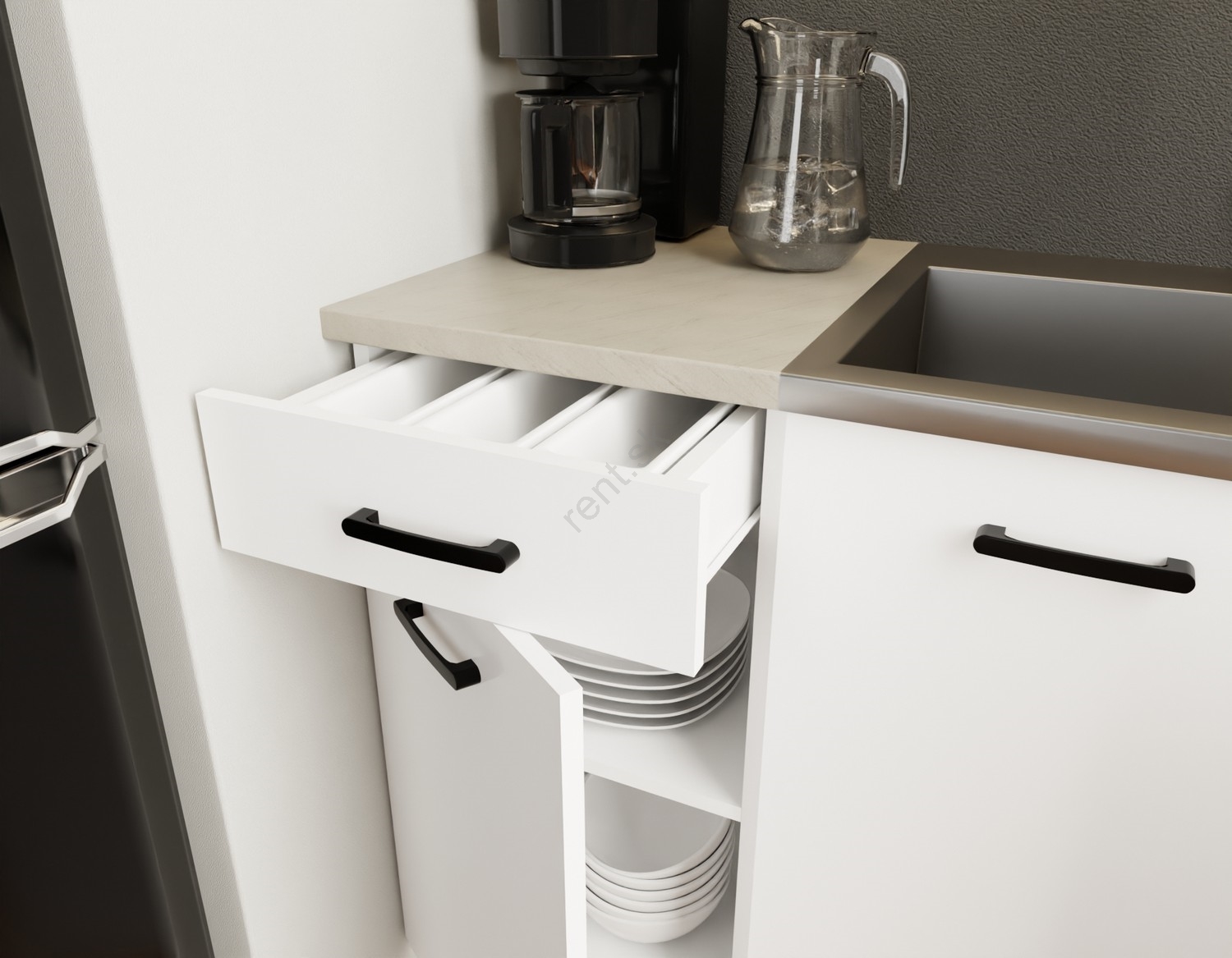 • Súčasťou nie sú elektrospotrebiče, kuchynský drez ani kuchynská batéria.