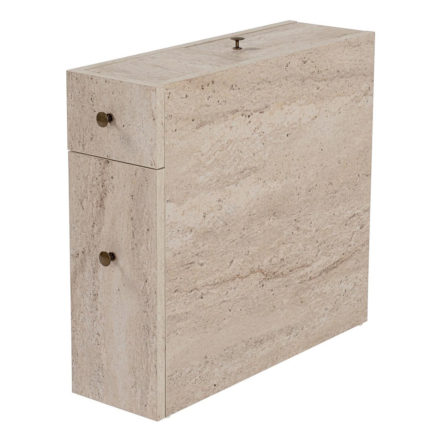Dve zásuvky a jeden úložný priestor v hornej časti skrinky.