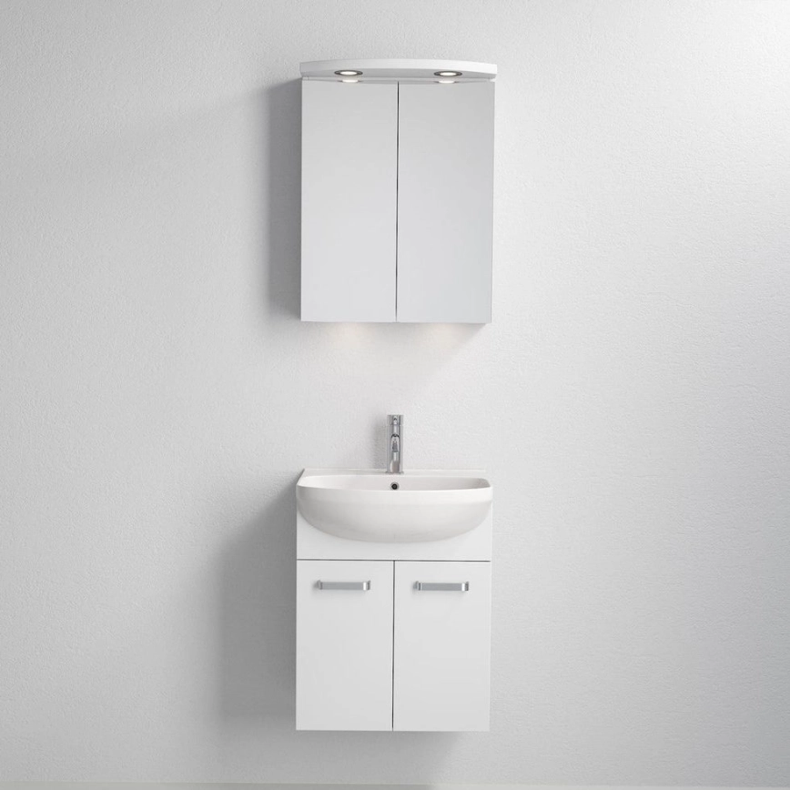 Kúpeľňová skrinka s umývadlom Vang + LED zrkadlová skrinka 230V IP44 biela