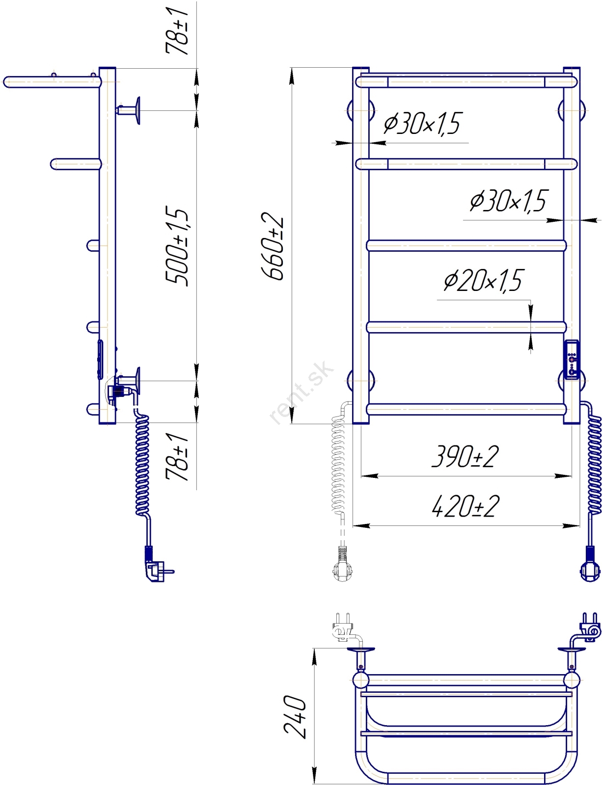 Kúpeľňový rebríkový radiátor HOTEL 75W/230V 65x43 cm nerez/biela pravé prevedenie