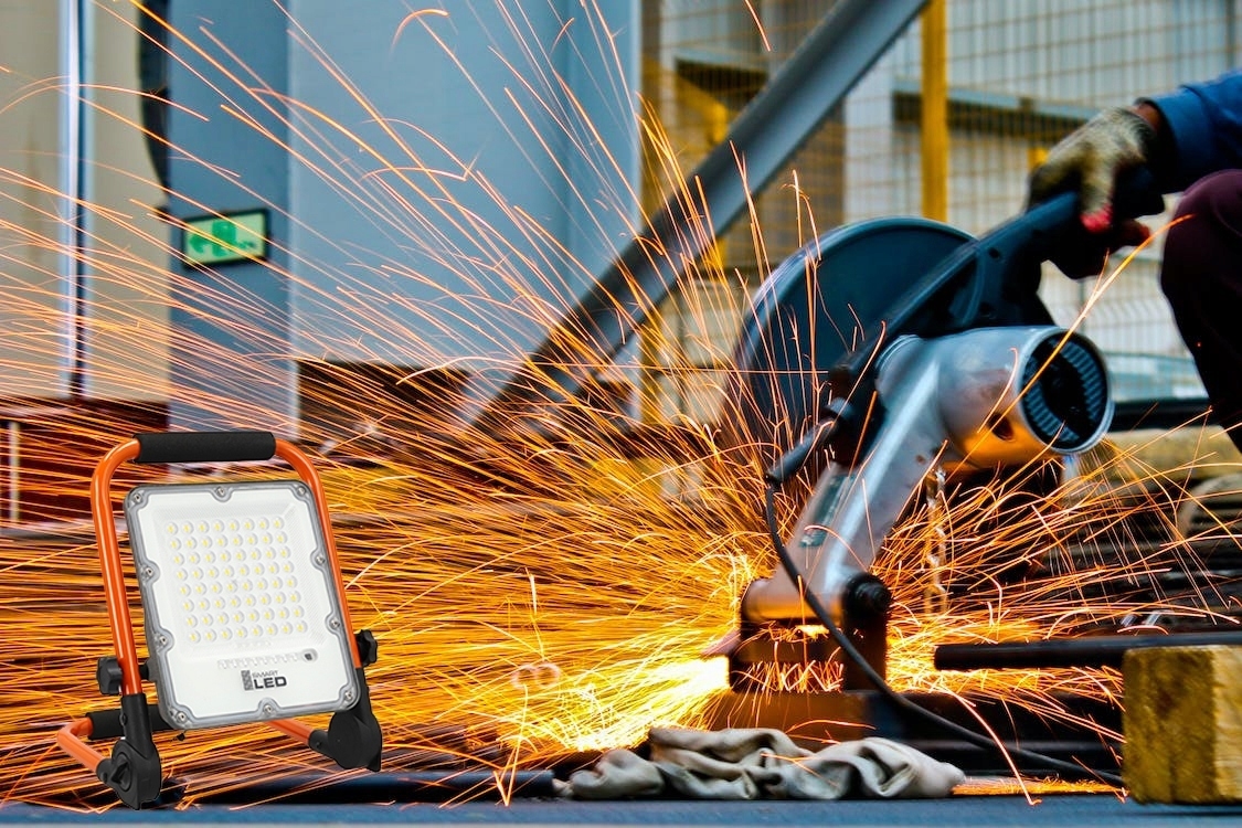 Nabíjateľný LED reflektor so stojanom, 50 W, 3,2 V, 4500 K, 5000 mAh, IP65, oranžový
