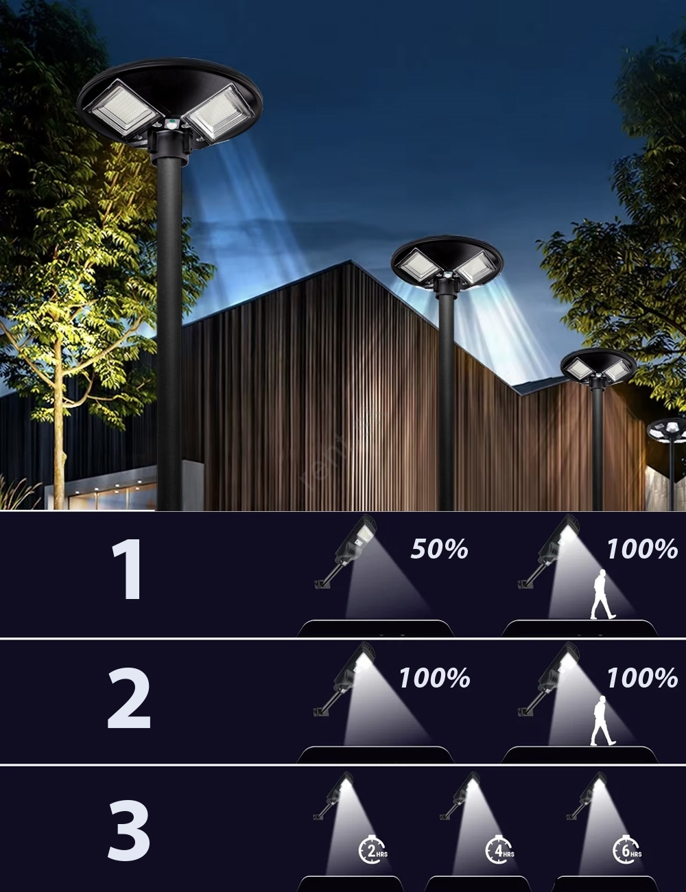 LED stmievateľná solárna pouličná lampa so snímačom LED/15W/6V 11000 mAh 6500K IP65 čierna + diaľkové ovládanie