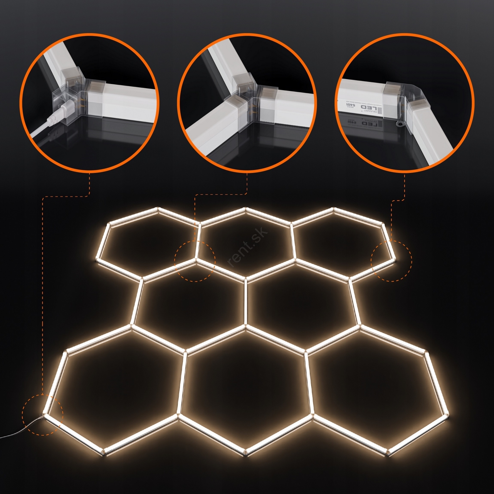• Vďaka šesťuholníkovej štruktúre pôsobí osvetlenie ako estetický prvok aj ako funkčný svetelný systém.