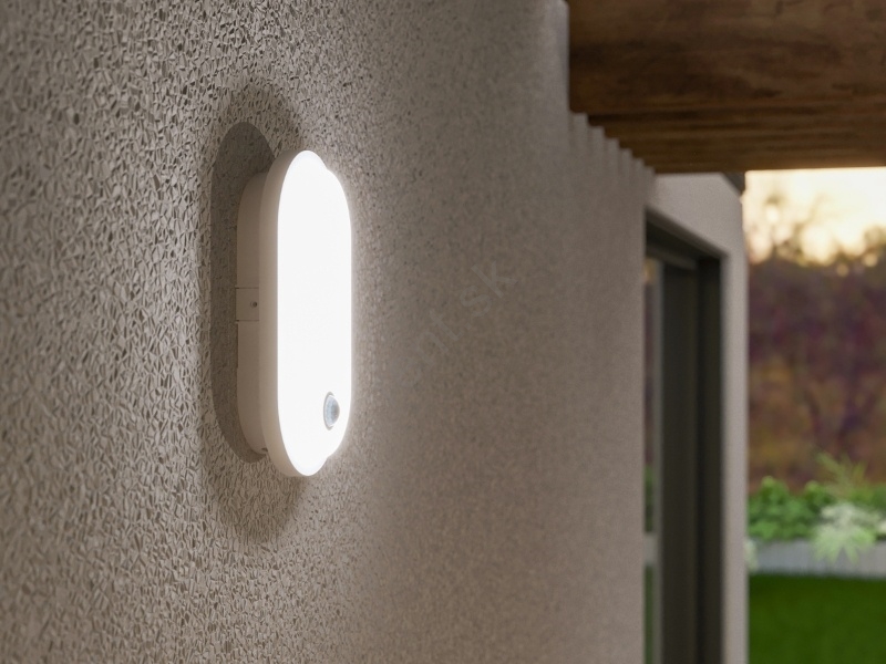 LED Vonkajšie nástenné svietidlo so snímačom pohybu a súmraku OVAL LED/10W/230V IP65 biela
