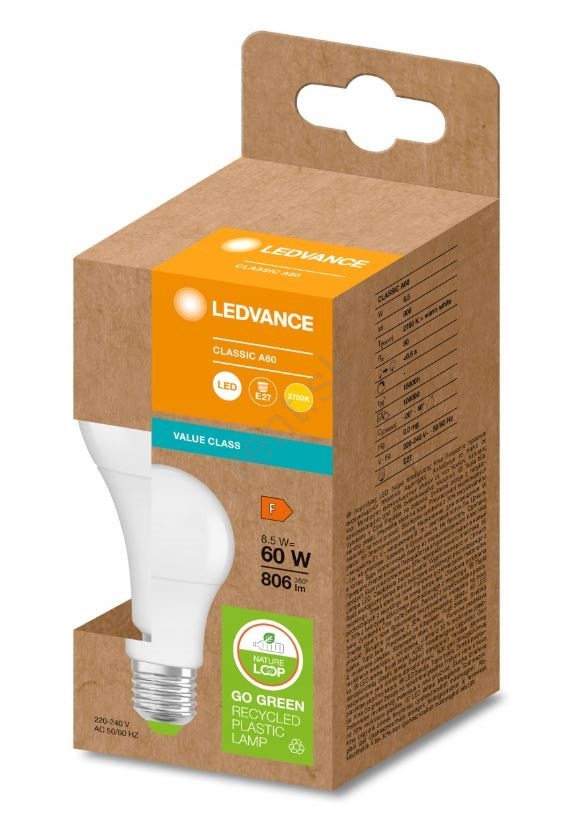 LED Žiarovka z recyklovaného plastu A60 E27/8,5W/230V 2700K - Ledvance