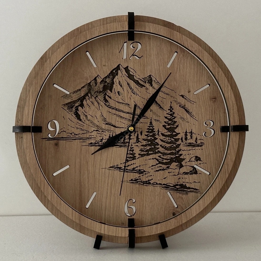 Li-Go 23676/DUB5 - Nástenné hodiny 1xAA priemer 32 cm dub/Hory
