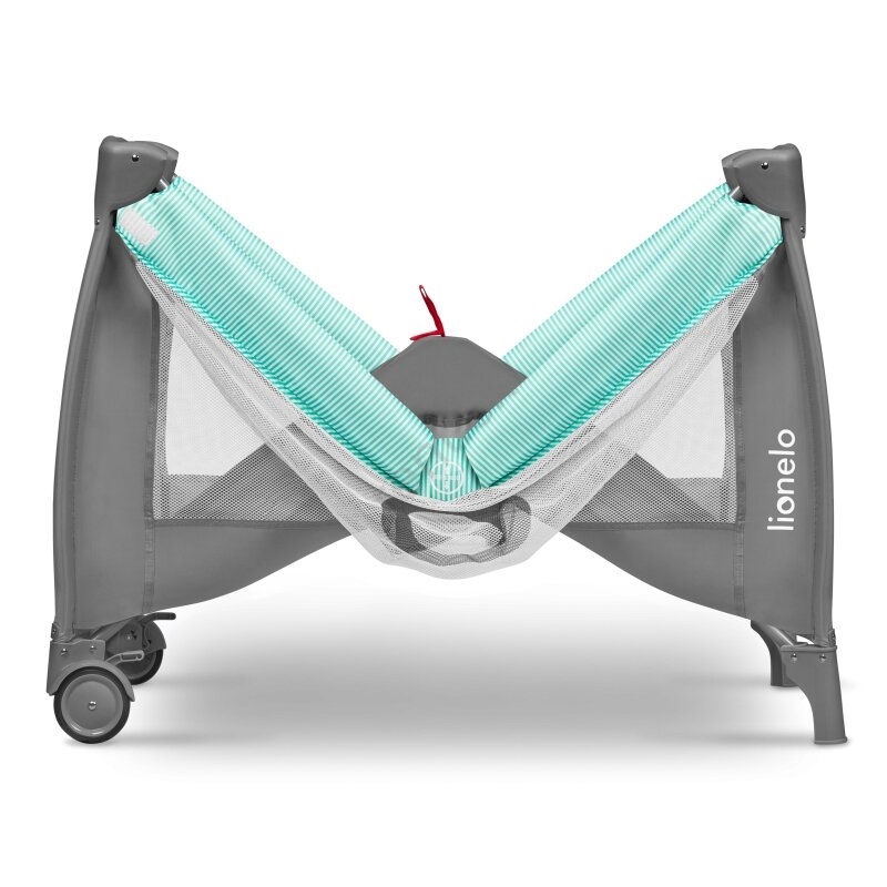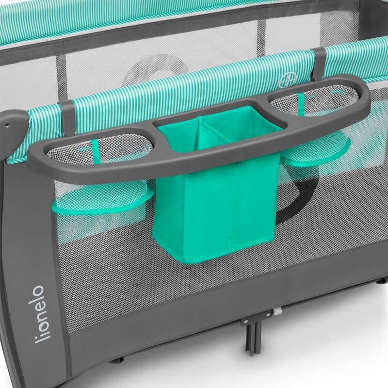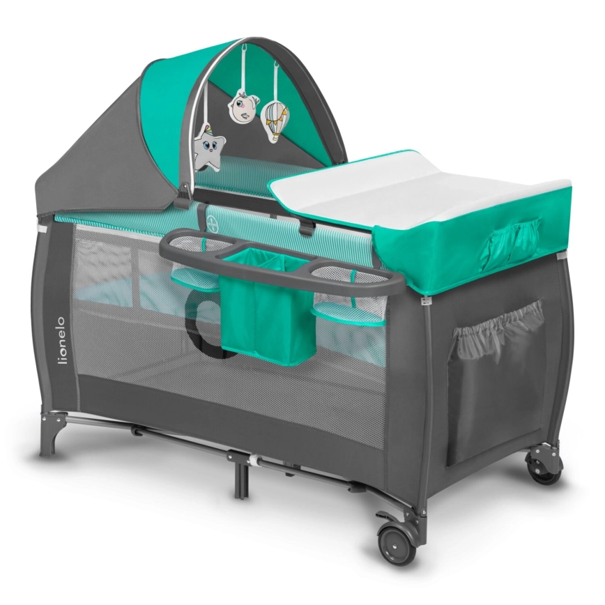Lionelo - Cestovná postieľka SVEN PLUS sivá/tyrkysová