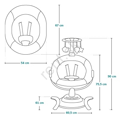• Pohyb zo strany na stranu, dopredu a dozadu, 5 rýchlostí hojdania + 1 automatická, ktorá sa mení každých 16 sekúnd.
