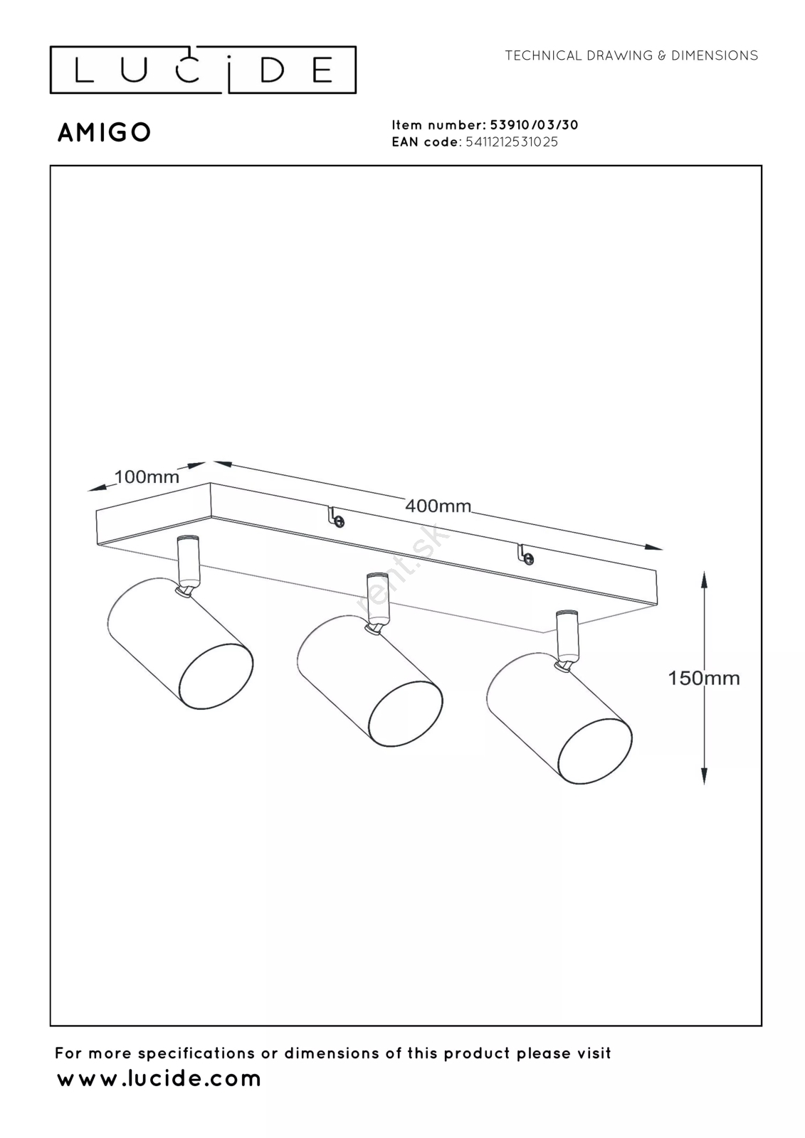 Lucide 53910/03/30 - Bodové svietidlo AMIGO 3xGU10/40W/230V čierne