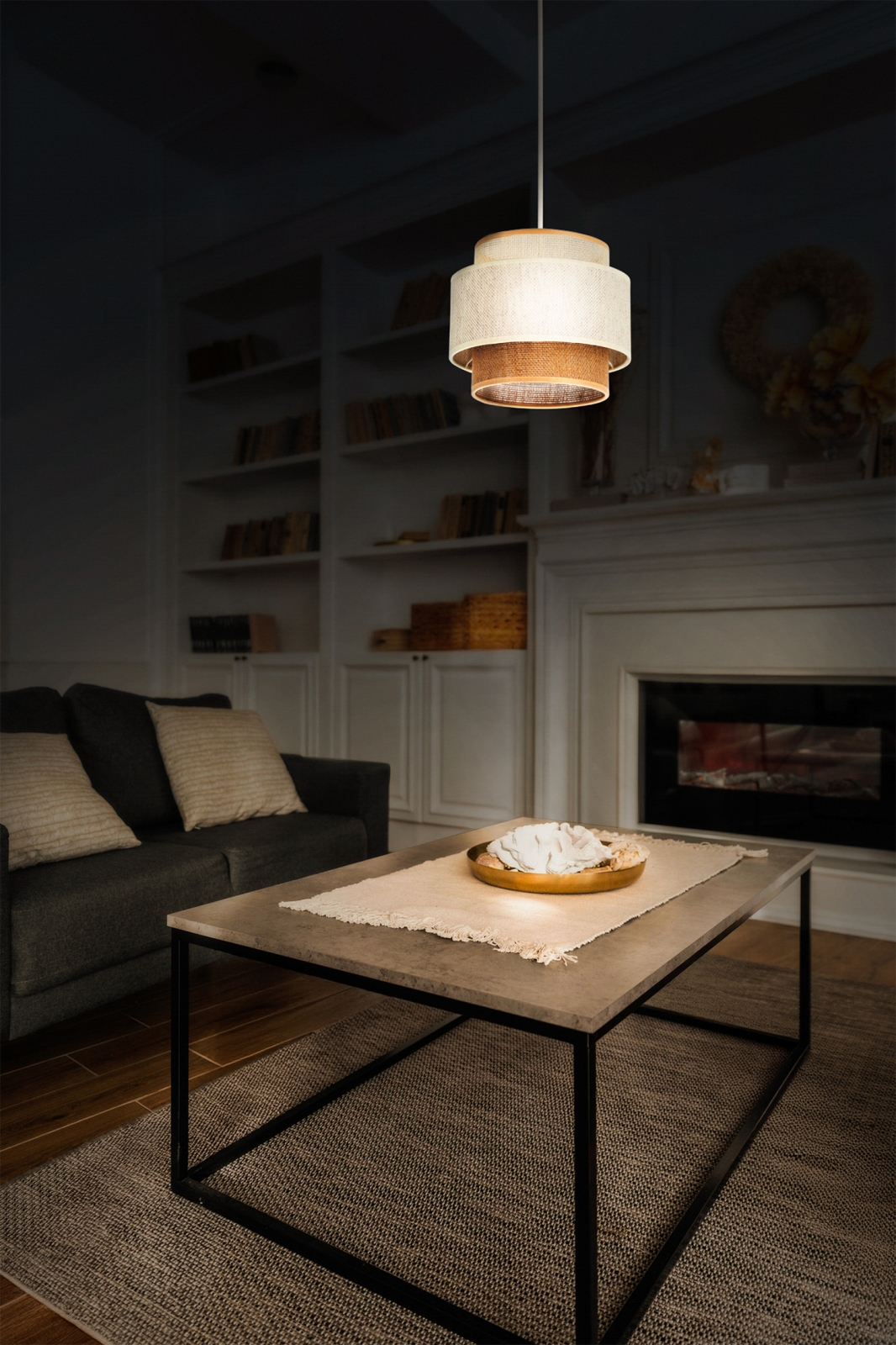 • Závesné svietidlo BOHO na lanku 1xE27/60W/230V, priemer 20 cm, krémová/juta