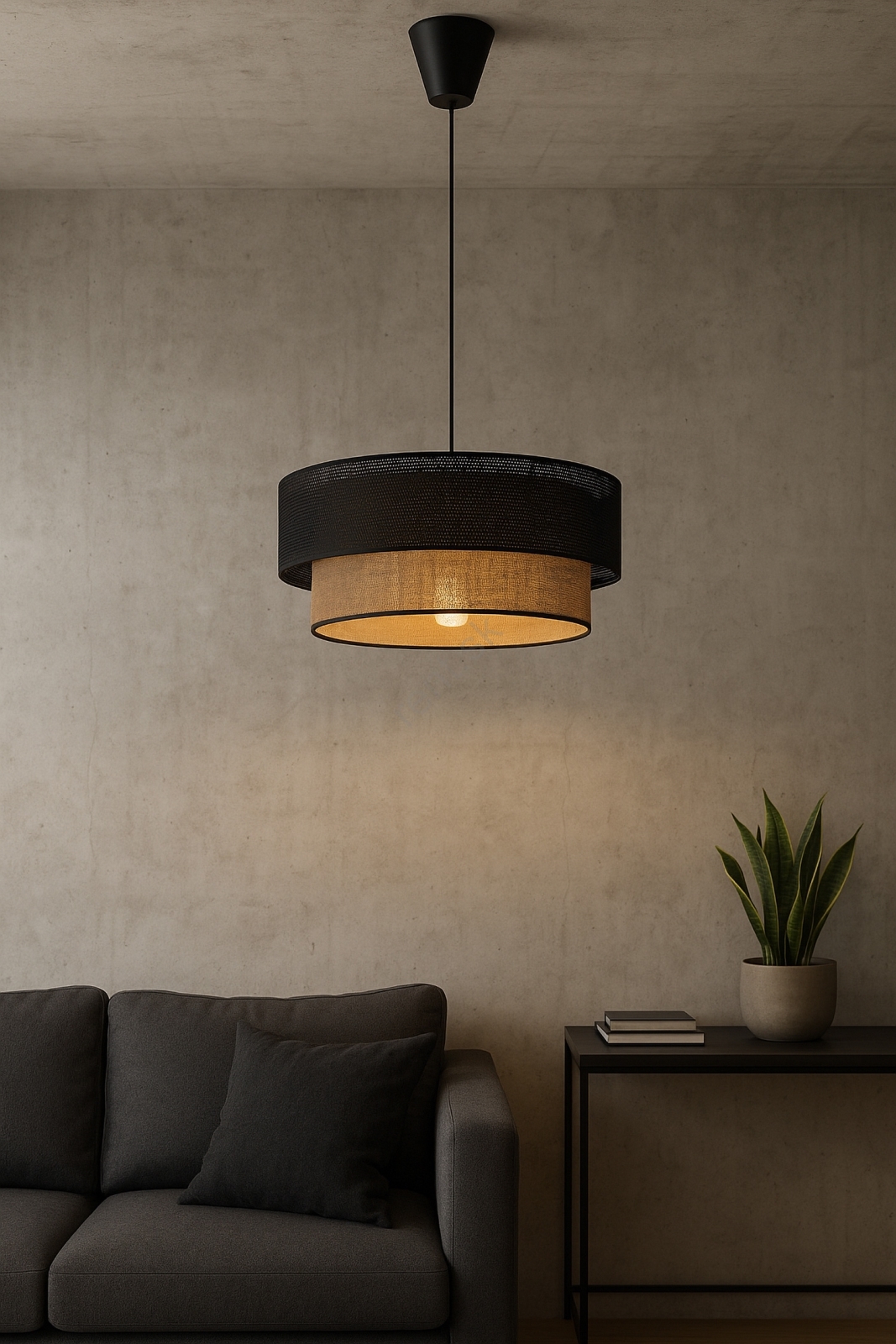 • Luster na lanku BORHO 1xE27/60W/230V, priemer 40 cm, čierna/juta