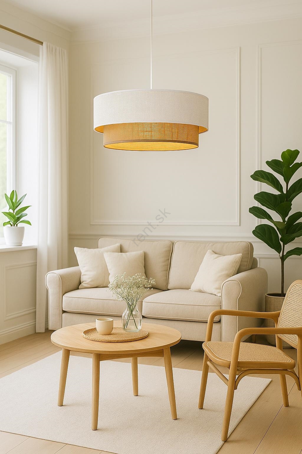 Luster na lanku BORHO 1xE27/60W/230V biela/juta