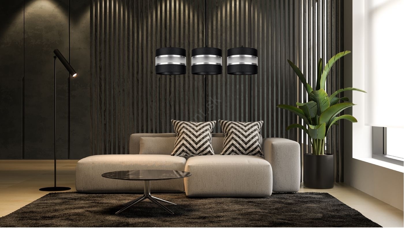 • Luster na lanku CORAL 3xE27/60W/230V čiernobiela