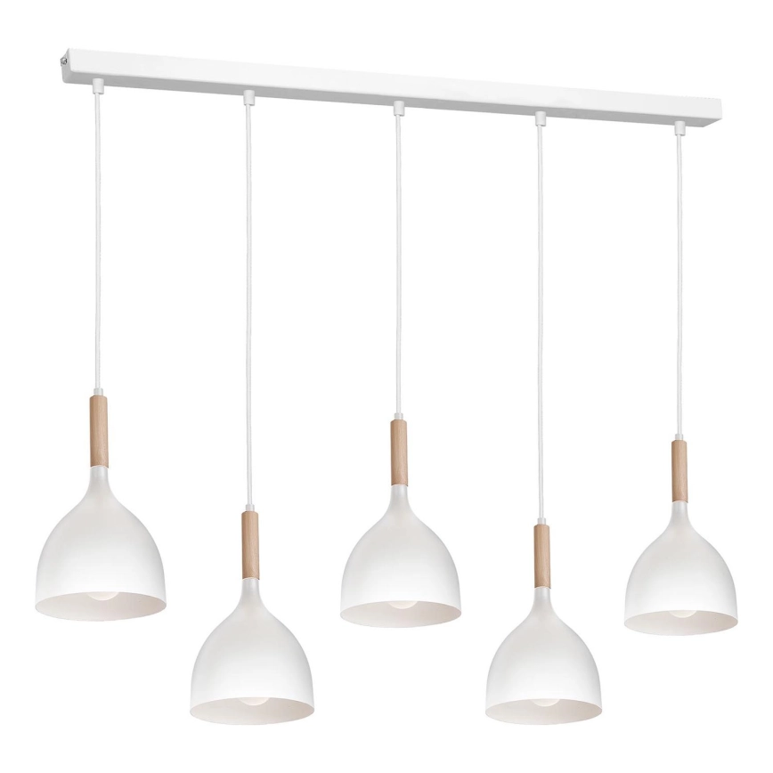 • Luster na lanku NOAK 5xE27/60W/230V biela/drevo