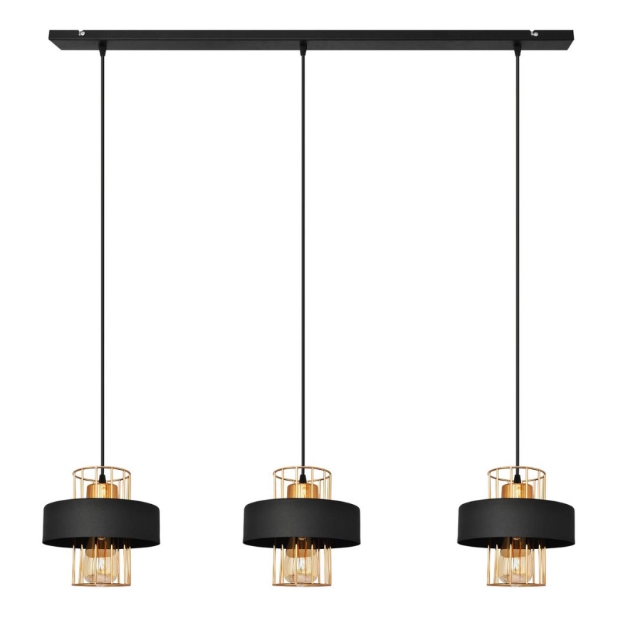 Luster na lanku VOLTA 3xE27/15W/230V čierna/ružové zlato