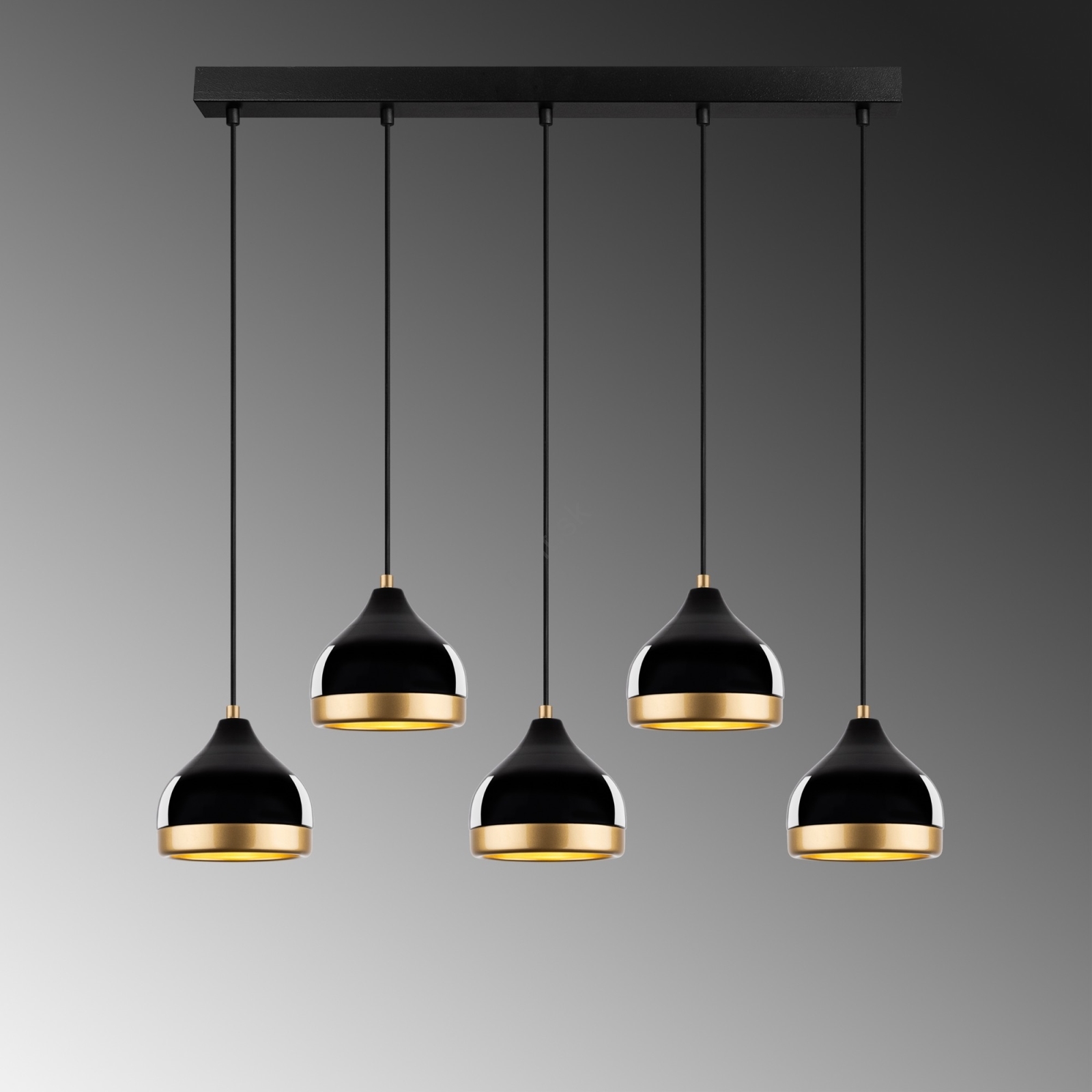 Závesný luster na lanku YILDO 5xE27/40W/230V čierna/zlatá charakterizuje pekný dizajn a funkčné prevedenie.  Do svietidla je určená žiarovka s päticou E27. Tu si môžete kúpiť ďalšie žiarovky za výhodnú cenu. Získate tak zaujímavý doplnok do svojho domova.
