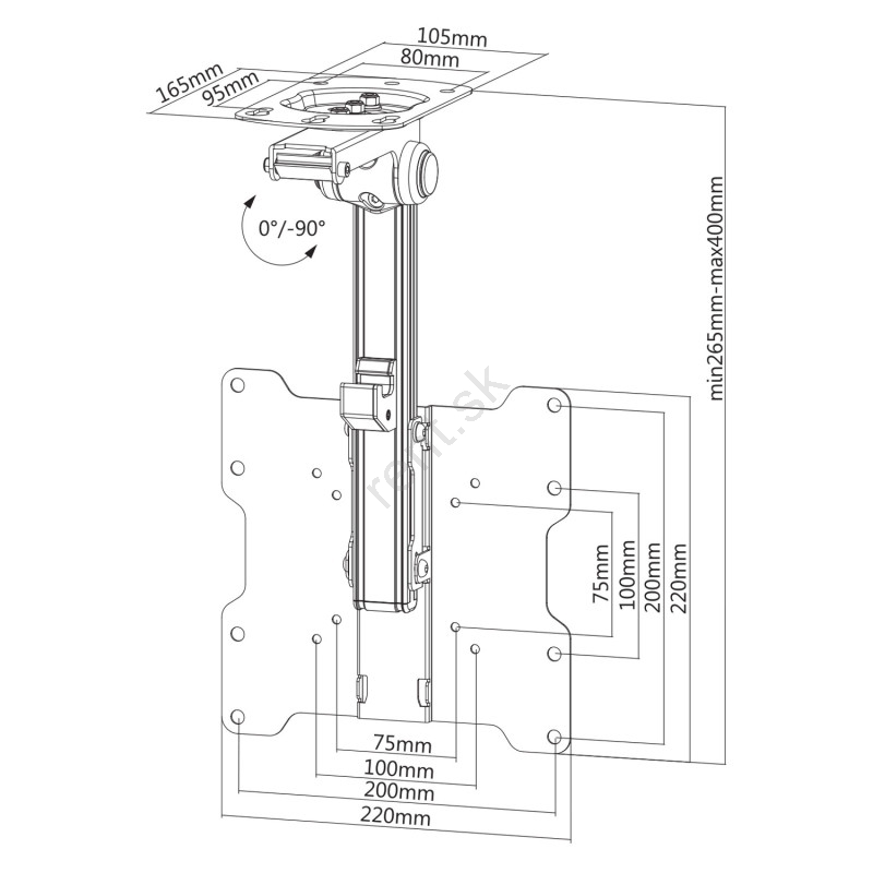 • Sklopný držiak na TV je určený na montáž televízie na strop, vrátane šikmých stropov v podkrovných priestoroch.