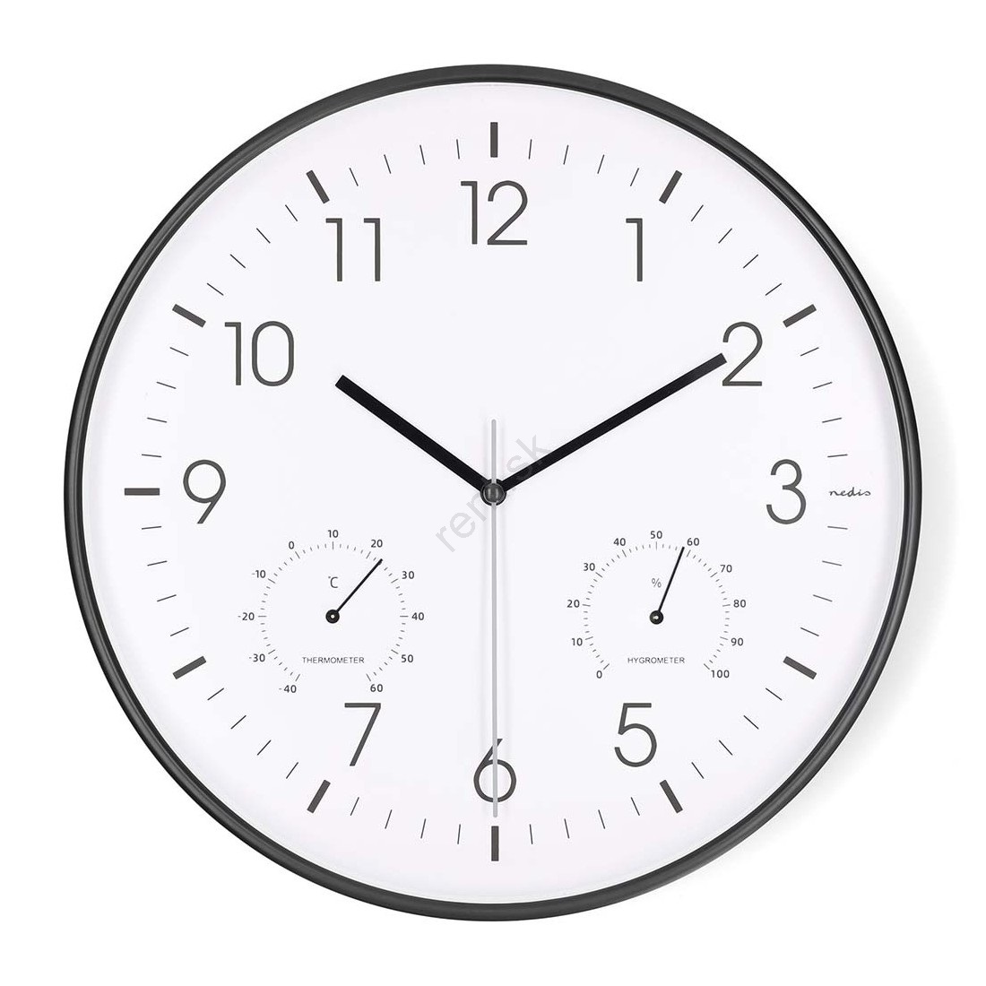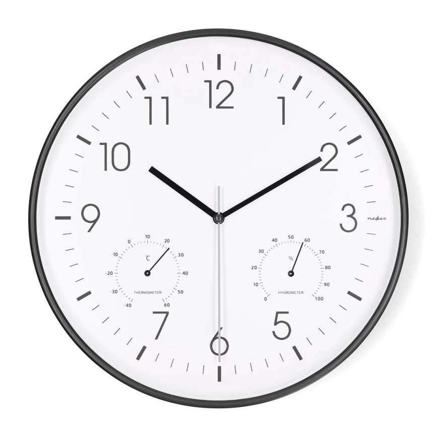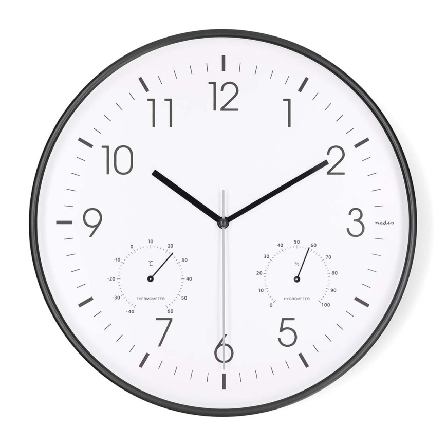Nástenné hodiny s teplomerom a vlhkomerom, priemer 30,5 cm, 1xAA, čierne
