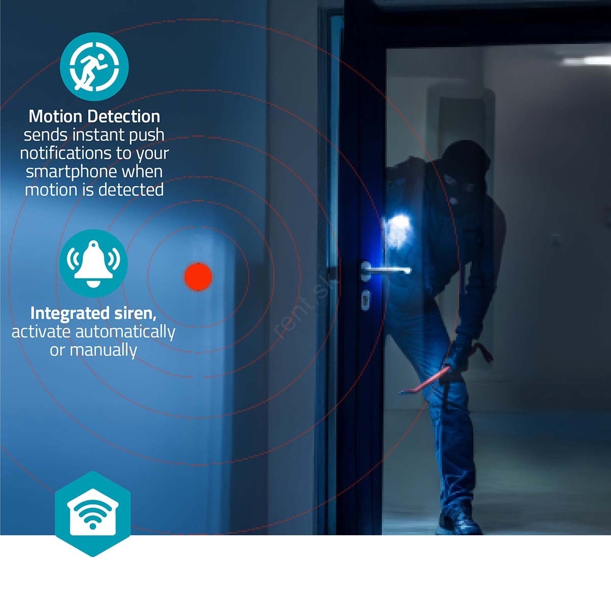 • Aktivácia sirény pri detekcii pohybu na odplašenie narušiteľov.