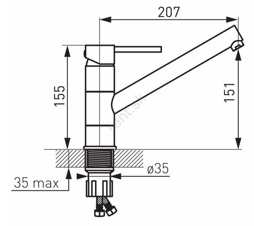 • Ovládací prvok: keramická kartuša 35 mm.