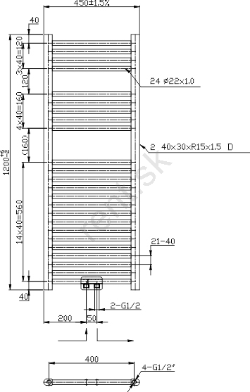 Novaservis - Kúpeľňový rebríkový radiátor 318W/230V 120x45 cm lesklý chróm priamy