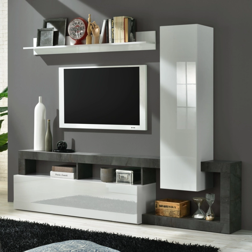 • Obývacia stena LENOR biela/šedý betón