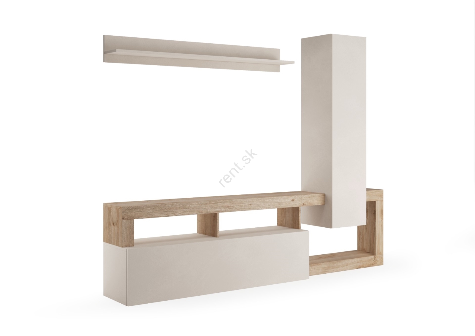• Súčasťou je priestranný televízny stolík s otvorenými policami pre mediálne zariadenia a uzavretými priehradkami pre diskrétne úložné priestory.