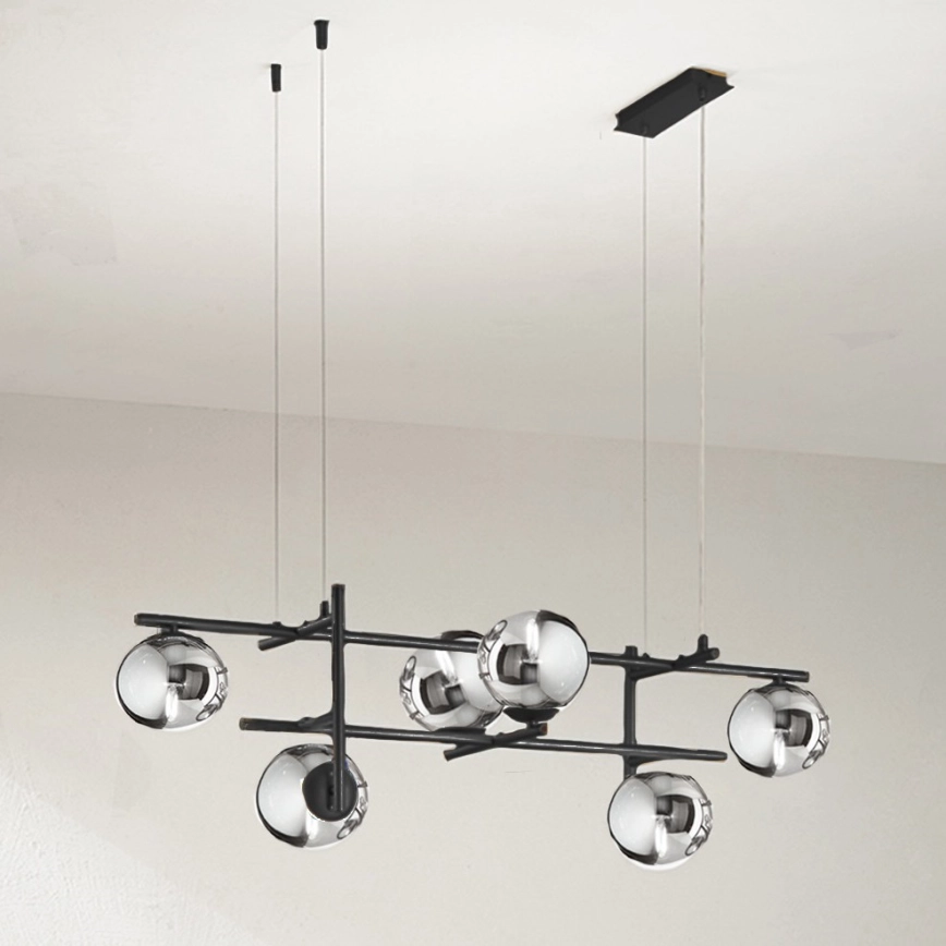 Ondaluce - Luster na lanku JEWEL 6xE14/10W/230V čierna/dymovo-čierna