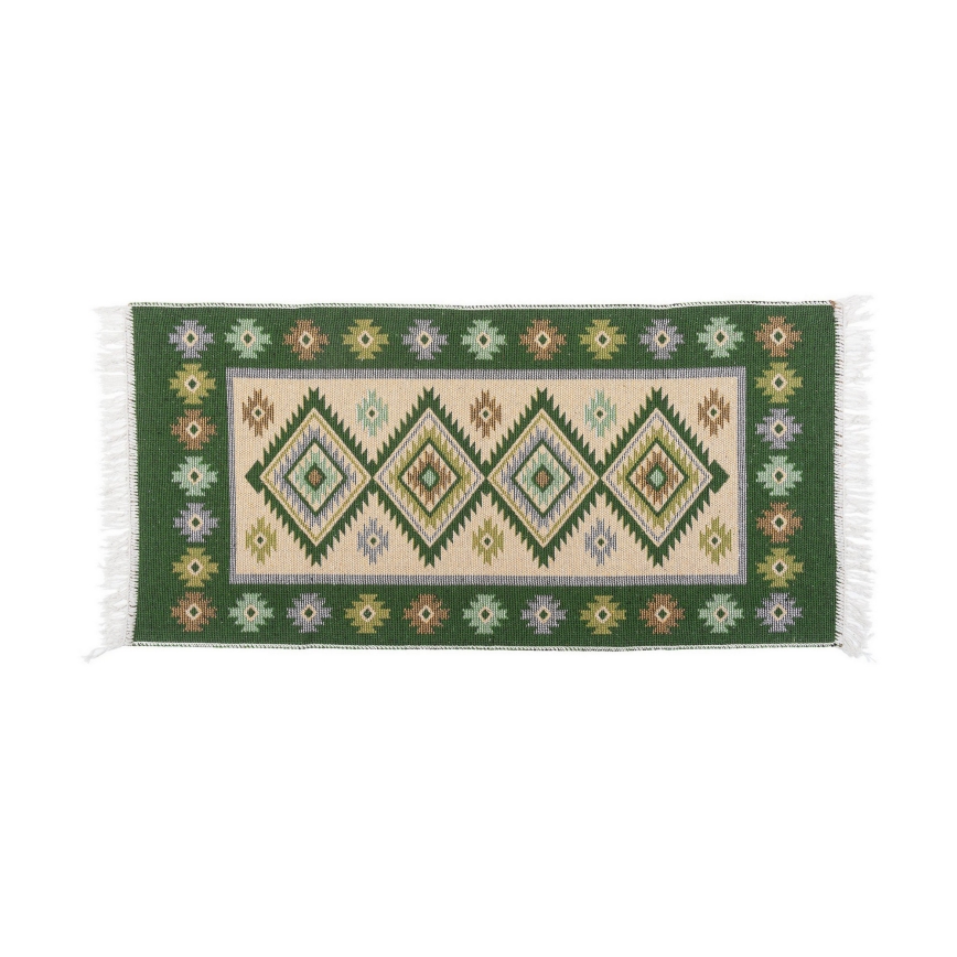 Obojstranný orientálny koberec KILIM 80x150 cm zelená/béžová