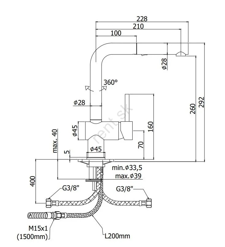 • Vybavená vysúvacou sprškou, ktorá uľahčí oplachovanie a dosiahnutie rohov drezu.