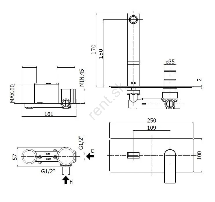 • Montážne podomietkové teleso je súčasťou balenia.
