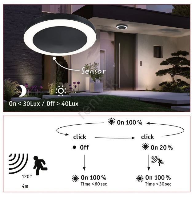 Paulmann 94526 - LED/14W IP44 Vonkajšie stropné svietidlo so senzorom CIRCULA 230V