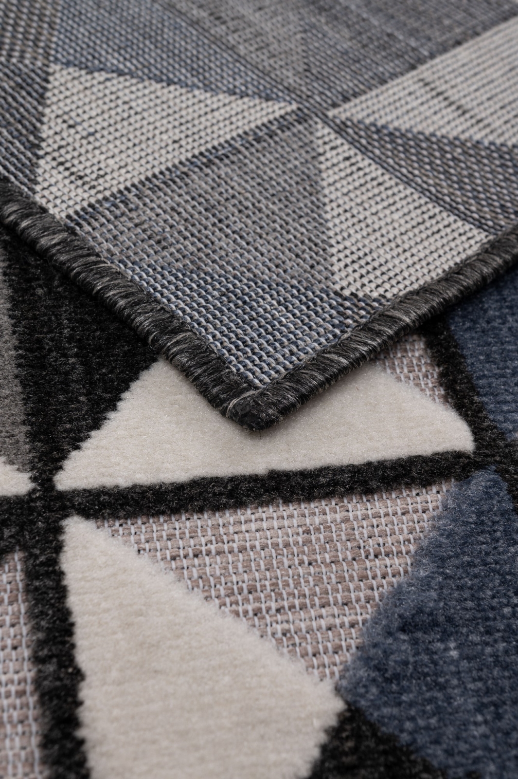 • Povrch koberca zdobí moderný geometrický vzor so striedanými výškami vlákien, čo koberci dodáva 3D efekt.