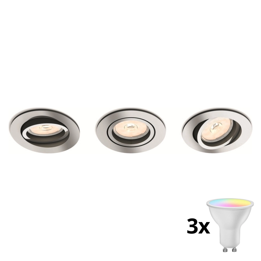 • Philips - SADA 3x LED RGBW stmievateľné zapustené stropné svietidlo 1xGU10/4,8W/230V matný chróm + diaľkové ovládanie