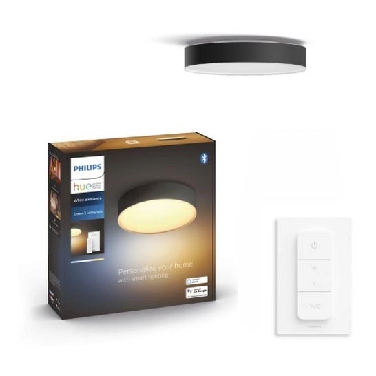 • Philips - stmievateľné LED stropné svietidlo Hue, 9,6 W/230 V, 2200-6500 K, pr. 261 mm, čierne + diaľkové ovládanie